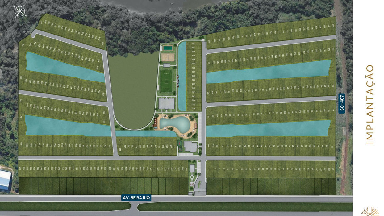 A área de lazer é completa e surpreendente: lago com vista livre permanente, ampla praia artificial, spa, fitness indoor, espaços gourmet, salão de festas, sport bar, sala de jogos, campo de futebol society, quadras de areia e padel, playground, pet place e áreas de contemplação. Tudo integrado a um projeto de urbanismo e paisagismo exuberantes, com preservação ambiental valorizando ainda mais a região.